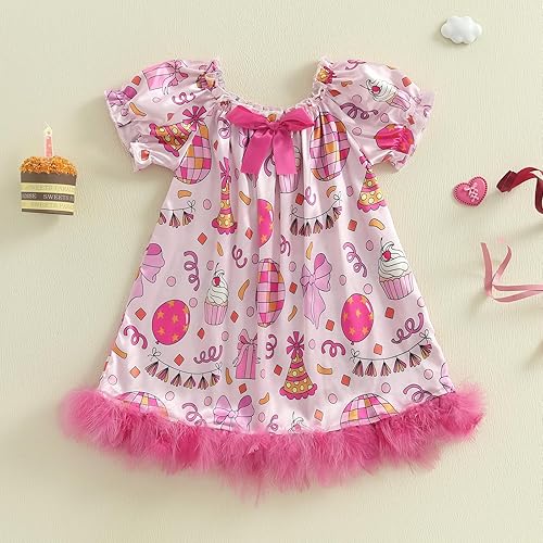 Design】:birthday girl pajamas,happy birthday pajamas for girls,pajama dress for girls,nightgown for girls,nightgowns for toddler girls,silky nightgowns for girls,princess nightgowns for girls,Plush trim design, elastic collar, bowknot front, short sleeve, cute balloon and cake pattens design make your little princess looks more sweet and elegant; The birthday sleepwear dress designed with bright color,your little one will love it so much