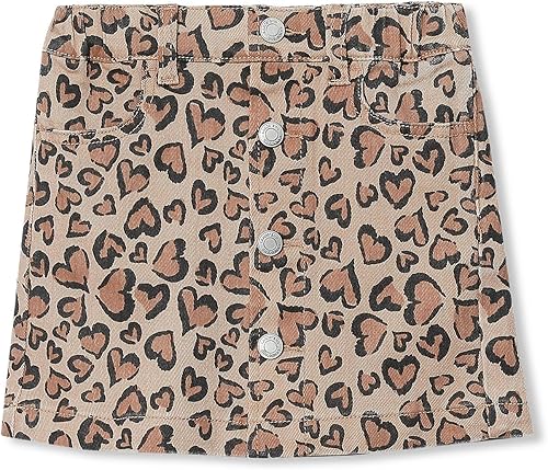 Lands' End Girls Denim Skort XXS Tan Cheetah Hearts