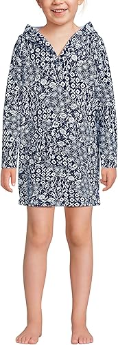 Lands' End Girls Terry Pullover Cover-up(Deep Sea Navy Floral Mix,Small)