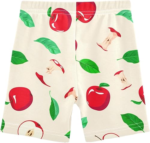 Leaf Red Fruits Girls Bike Shorts Toddler Soft Cotton Active Under Dress Shorts(Multi-leaf Red Fruits,8 Years)