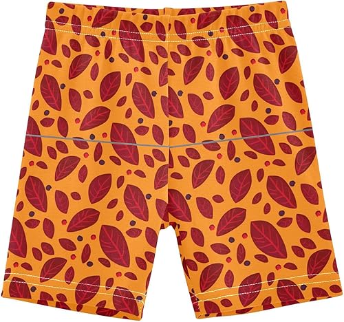 Leaves Brown Girls Bike Shorts Toddler Soft Cotton Under Dress Cartwheel Shorts(Multi-leaves Brown,10 Years)
