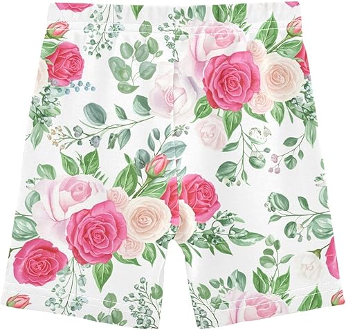 Leaves Green Flower Girls Bike Shorts Toddler Soft Cotton Active Under Dress Shorts(Multi-leaves Green Flower,4T)