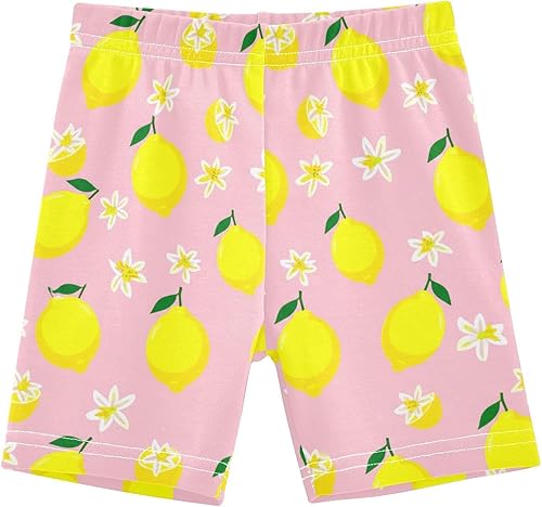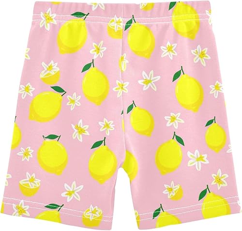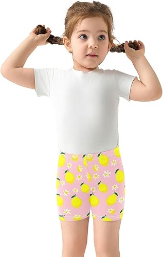 Lemon Flower Pink Girls Bike Shorts Toddler Soft Cotton Under Dress Dance Shorts(Multi-lemon Flower Pink,10 Years)