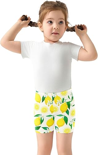 Lemon Flower Yellow Girls Bike Shorts Toddler Soft Cotton Active Biker Shorts(Multi-lemon Flower Yellow,5T)