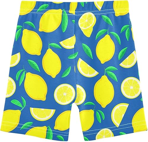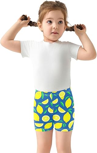 Lemon Leaf Blue Girls Bike Shorts Toddler Soft Cotton Under Dress Dance Shorts(Multi-lemon Leaf Blue,10 Years)