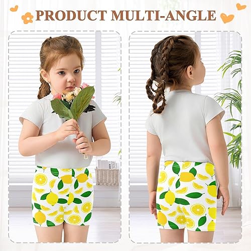 Lemon Yellow Girls Bike Shorts Toddler Soft Cotton Active Biker Shorts(Multi-lemon Yellow,10 Years)