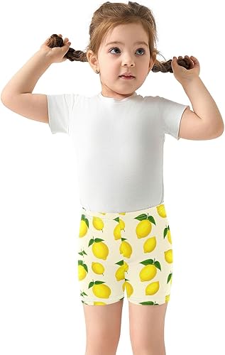 Lemon Yellow Leaf Girls Bike Shorts Toddler Soft Cotton Under Dress Cartwheel Shorts(Multi-lemon Yellow Leaf,10 Years)