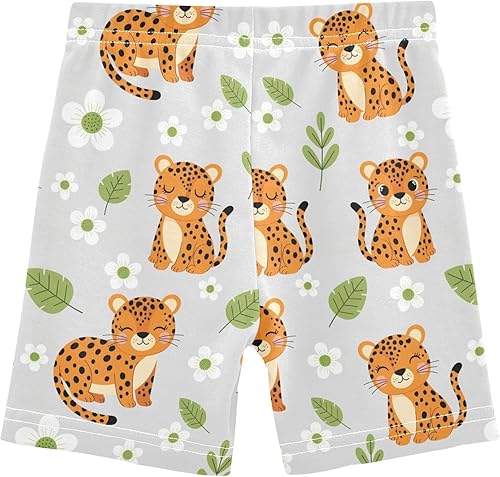 Leopard Flower Gray Girls Bike Shorts Toddler Soft Cotton Cartwheel Under Dress Dance Shorts(Multi-leopard Flower Gray,5T)