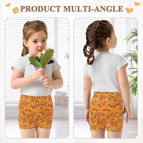 Leopard Orange Girls Bike Shorts Toddler Soft Cotton Under Dress Dance Shorts(Multi-leopard Orange,5T)