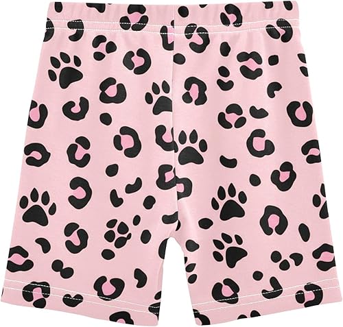 Leopard Paw Pink Girls Bike Shorts Toddler Soft Cotton Active Under Dress Shorts(Multi-leopard Paw Pink,10 Years)