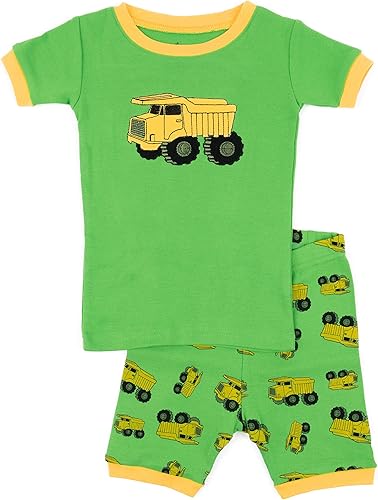 Leveret Kids Boys Girls Two Piece Pajamas Set 100% Cotton Short Summer Pajamas Dump Truck (10 Years)