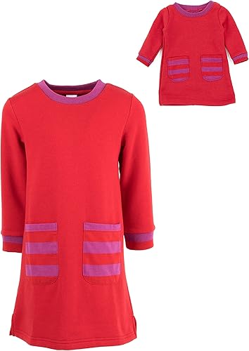 Leveret Kids & Toddler Uniform Matching Girls & Doll Sweatshirt Dress Variety of Styles (Size 2-14 Years)(Red,6 Years)