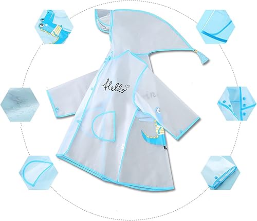 Lightweight Kids Hooded EVA Rain Poncho Toddler Boys Girls Raincoat Water-Proof Coverall (A5-Blue, 3-4 Years)