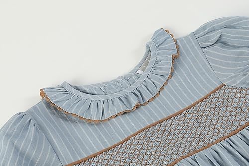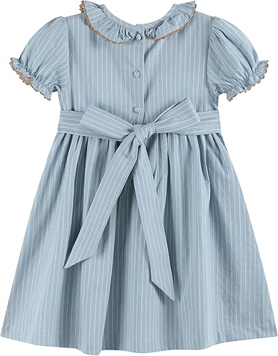Boutique quality smocking and embroidery with details like ruffle collar, rick rack trim detail, tie bow on the back