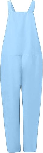 Linen Coveralls for Women Summer Fall Loose Fit Thin Overall Overalls Trousers Pants Unitard Women 2025(L-429 Light Royal Blue,Medium)