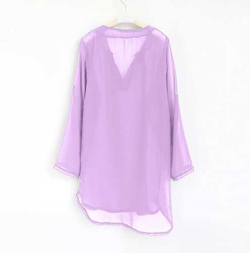 Little Girl's Swimsuit Cover Up Chiffon Shirt Solid Bikini Beachwear Bathing Suit Beach Tween Dresses(Purple,4-5T)