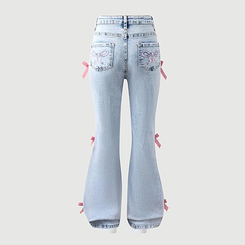Little Girls Cute Bows Flare Leg Jeans Flim Fit Stretchy Bell Bottom Denim Pants for Kids 8 to 12Y(Light Blue,12-13 Years)