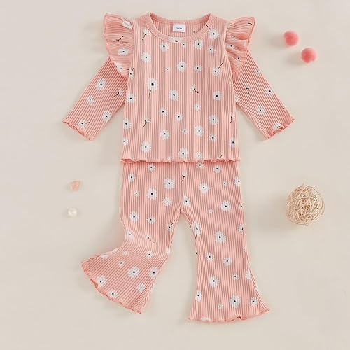 Cute Design: This little girl fall outfit has long sleeve, crew neck, pair with a pair of matching flare pants, the flower printed clothing set makes your girl looks adorable and lovely