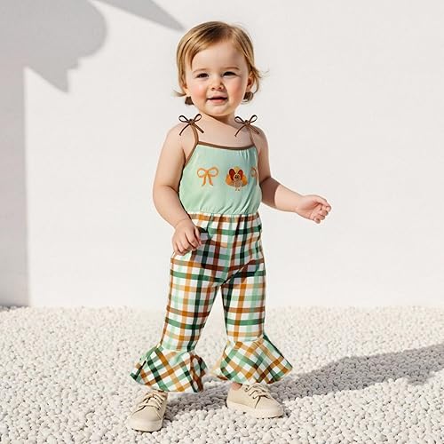 Size: Ruffle Bells Pants thanksgiving Romper is suitable for babies2-3T, thanksgiving outfits for girls 3-4T, thanksgiving day toddler girl 4-5T.One piece thanksgiving outfit for little girl 5-6T,6-7T turkey letter print toddler baby girl ribbed romper one-piece playsuit