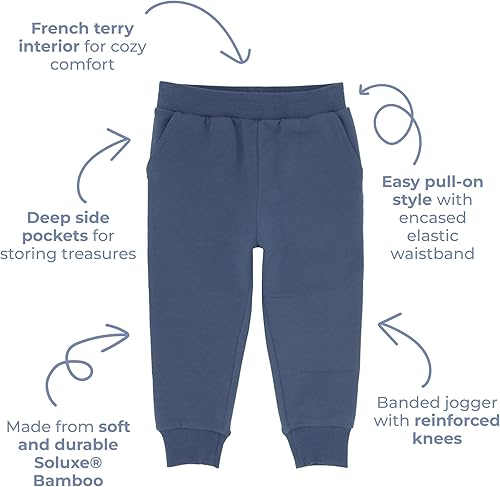 [Soft & Durable Fabric] Crafted from our signature Soluxe fabric, our boys sweatpants are perfect for playtime! Super soft with a French terry interior, they're hypoallergenic, easy on sensitive skin & feature natural UPF 25 sun protection
