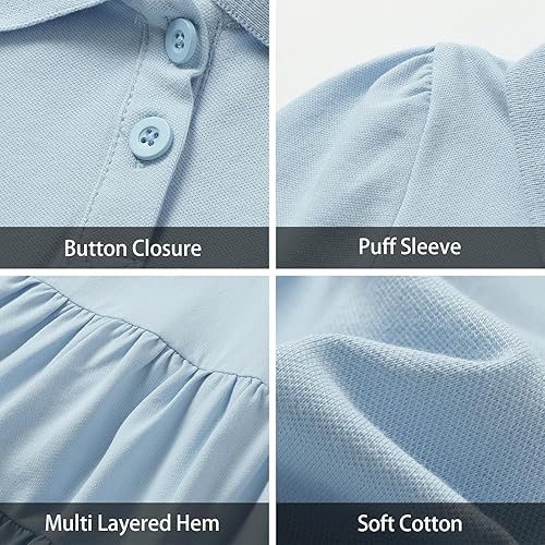 Back to school dress for girls, regular fit short sleeve school uniform dresses, knee length, classic polo neckline, essential for returning back to school in summer
