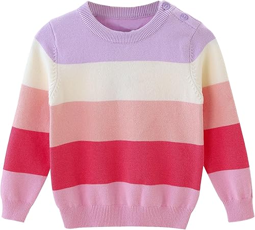 Rainbow Stripes: This girls striped sweater features vibrant rainbow stripes that add a cheerful pop of color to any outfit, making it perfect for little girls who love bright and fun styles
