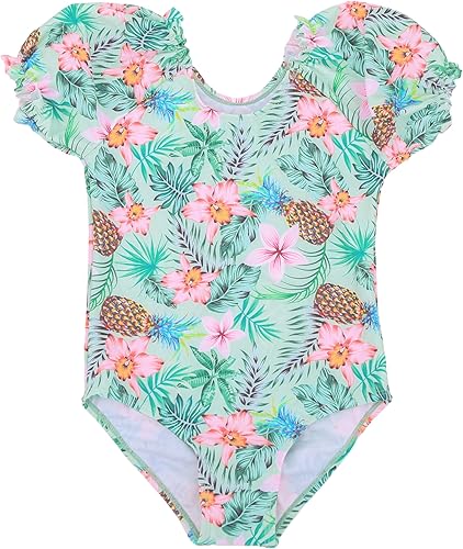 The puff sleeve design adds a trendy and fashionable element to this girls swimsuit