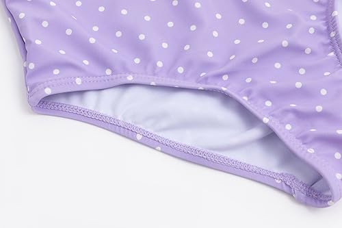 Featuring a vibrant purple color and adorned with cute fish and dot patterns, this swimwear is as stylish as it is comfortable. Your little girl will love showing off her unique sense of style with this trendy swimsuit.