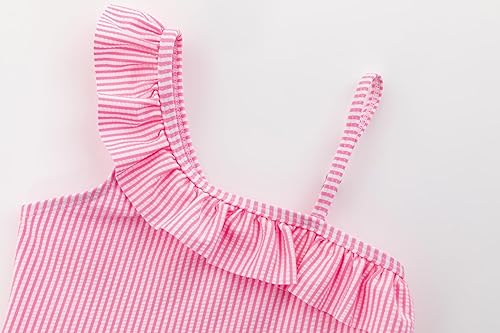 The one-shoulder bikini top features a ruffle trim for added style, and the matching bottoms are also features a ruffle flounce ,bright colors that are sure to stand out. Your little girl will love wearing this set to various occasions, thanks to its versatile and trendy design.