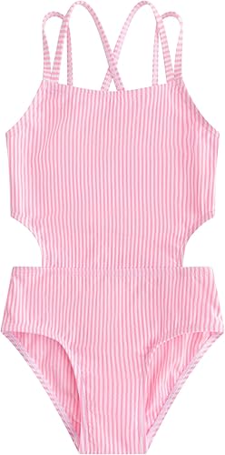 Trendy Cut Out Design:LIZENS girls one piece swimsuit made with side cut and spaghetti strap design. Adorable asymmetrical style with delicate ruffle accents and stripe adds a chic touch for beach days or pool parties.
