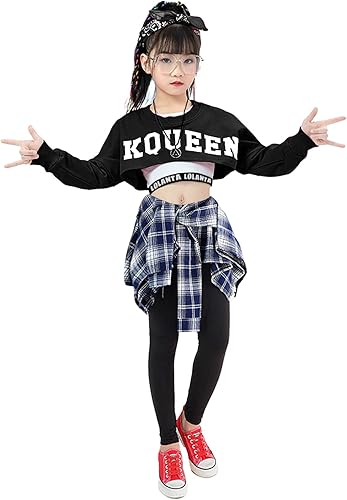 【Cropped Design and Checkered Skirt Pant】The cropped shirt length falls just below the chest, perfect for pairing with an undershirt for a chic look. The drop shoulder design adds a relaxed, trendy vibe. And the irregular skirt pant design adds a touch of flair and fluidity to your dance moves.