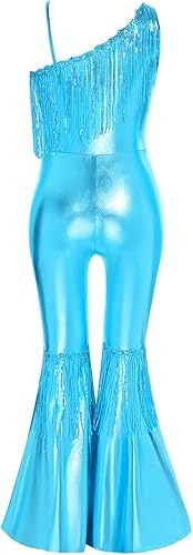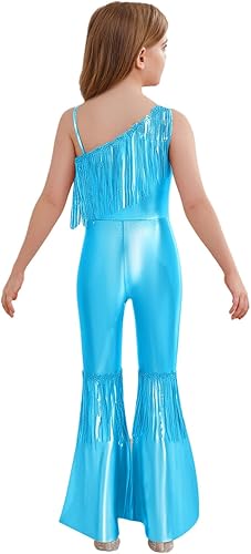 Loyan Girl's Pageant Party Romper Dance Prom Leotards Sparkly Sequin Long Jumpsuit Flare Bell Bottom Lake Blue 8 Years