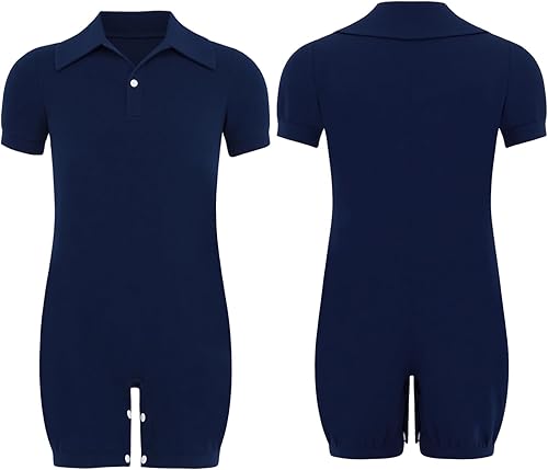 Loyan Kids Boys Girls Button Down Romper Jumpsuit Special Needs Adaptive Clothing Short Sleeve Dungarees Overalls(Black,16 Years)