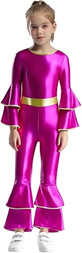 • 70s disco costume for girl, is designed with round neck, long sleeves, high waist, tiered flared detail, and back zipper closure