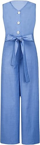 The jumpsuit features with sleeveless and v neckline, button closure in the front, easy to put on or take off, simple solid color