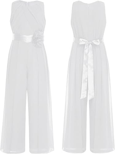 Solid color round collar sleeveless high waist ruffled chiffon jumpsuit with a detachable flower embellished at the waistline, gorgeous and elegant
