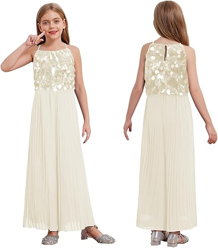 Loyan Teen Girls Sparkly Wide Leg Romper High Waist Ruffle Pants Shiny Jumpsuit Prom Party Formal Suit Gold 10 Years