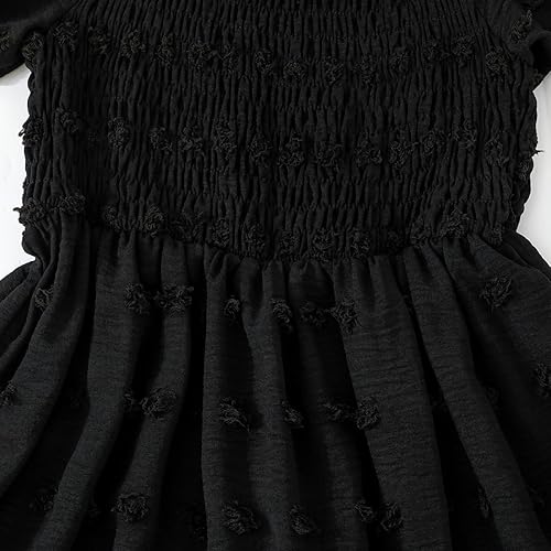 Features: This stylish and sophisticated summer dress for girls features a retro polka dot design with a ruffled square neckline, flowing sleeves, a ruched bodice, an elastic waist, a flared skirt, and a tiered hem, giving your lovely girl a stylish and trendy look.