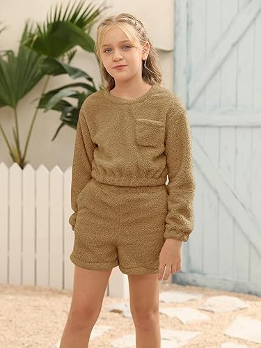【FEATURES】Cute outfit and pajama for girls feature with long sleeve,solid color,elastic waistband,functional side pockets,soft and fuzzy material,casual slouchy style,gives your children extraordinary comfort