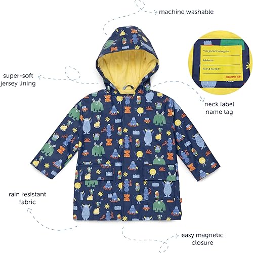 ADDITIONAL FEATURES: jersey lined hood, front pockets, and neck label name tag make this jacket perfect for little kids on the go