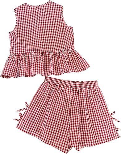 Features: Plaid print, flared hem, sleeveless, two piece set for girls