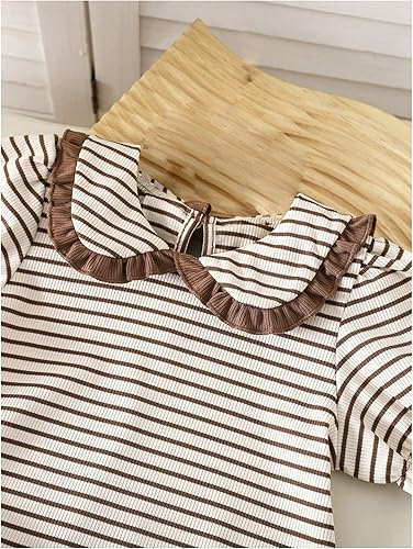 Features: Stripe print blouse, lettuce trim bell bottoms, two pcs set for girls