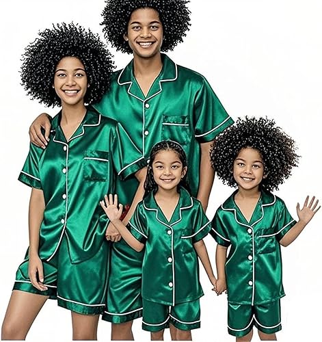Design: The design of the silk pajamas for family short-sleeved shorts is suitable for keeping the body cool and facilitating the movement of the limbs. The tight button closure adds a retro and sophisticated feel.