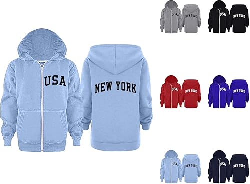 MCILLO New York Zip Up Hoodie for Kids Long Sleeve Fashion Graphic Hooded Sweatshirt with Pockets for Boys Girls Jacket Coat(Black,4-5 Years)
