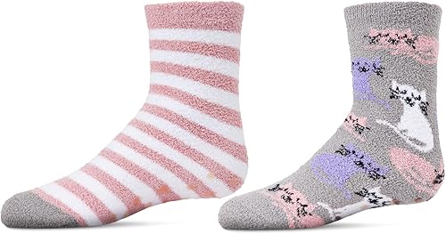 MeMoi Girl's Kitty Cats Fuzzy Mid-Cut Socks 2-Pack(Gray,One Size)