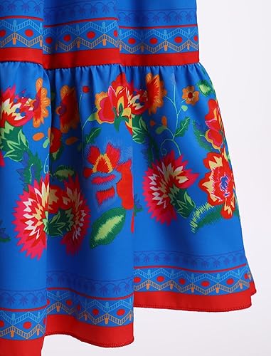 Quality Fabrics: Kids Mexican dress, girls Mexican clothes, Mexican Princess Dress, traditional mexican dress for girls, Fancy Mexican Style Dress. The Mexican floral print dress is made of high quality polyester, which is comfortable, soft and stretchy to wear and won't rub against your little princess's delicate skin, relaxed and unencumbered at cultural dances or lively holiday celebrations and events. The loose fit and breathable fabric allows for all-day wearing comfort