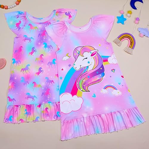 2-Piece Girls nightgowns: Package included 2 nightgowns for girls, easy to replace for the whole week. With a variety of fun patterns, your little princess can enjoy a new look each night, making bedtime more exciting and enchanting.