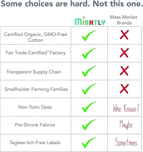 TAGLESS AND PRE-SHRUNK - Itch-free labels in our kid and toddler clothes means no complaints! High quality stitching ensure that the clothes look as good as they feel. Mightly boys and girls clothes are made from non-irritating un-coated organic cotton better for sensitive skin. Our natural-fiber fabrics have been pre-washed to eliminate most shrinkage and are durable enough to handle repeated machine washing. Just wash on cold and tumble dry low.