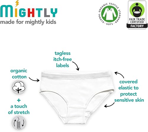 MIGHTLY GIRLS' UNDERWEAR - Made of high-quality comfortable fabric, sweat-wicking and breathable, Mightly girls' briefs are smooth and soft to the touch and fit perfectly without irritating the skin. Soft and close to the body, the elastic design fits naturally, with a comfortable elastic waistband that won't bind or pinch.