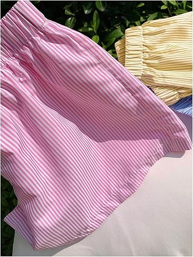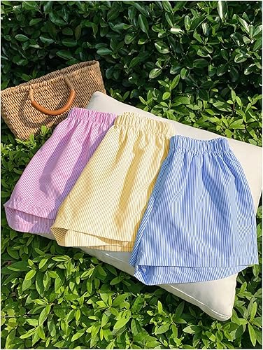 Feature: 3 Piece Set, Striped Print, Elastic Waist, Straight Leg Casual Shorts for Girls